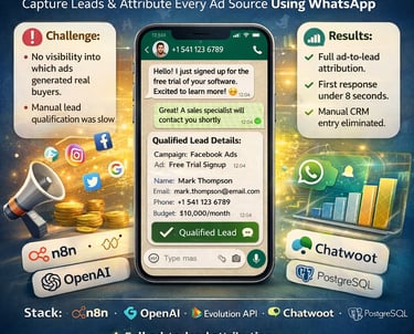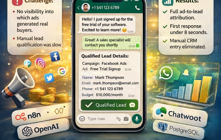 Challenge: Business running paid campaigns had no visibility into which ads were generating real buyers. Manual lead qualification was slow, producing no performance data.